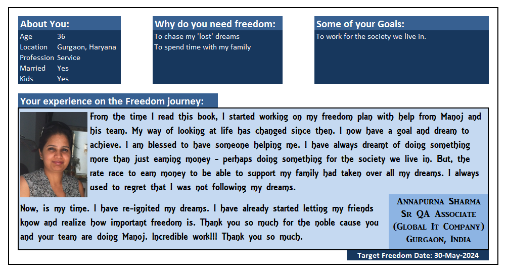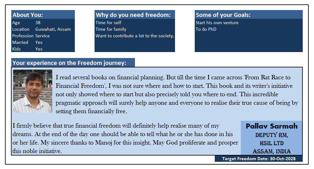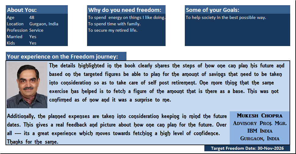 And after you have gone through the book, make sure you connect with us to get your customised financial freedom plan created or validated. No charges.. No fees.. |