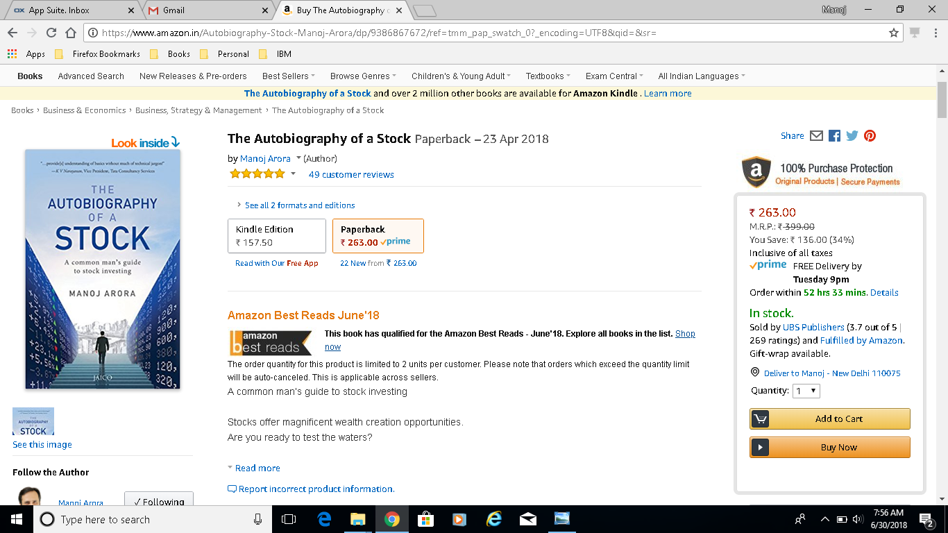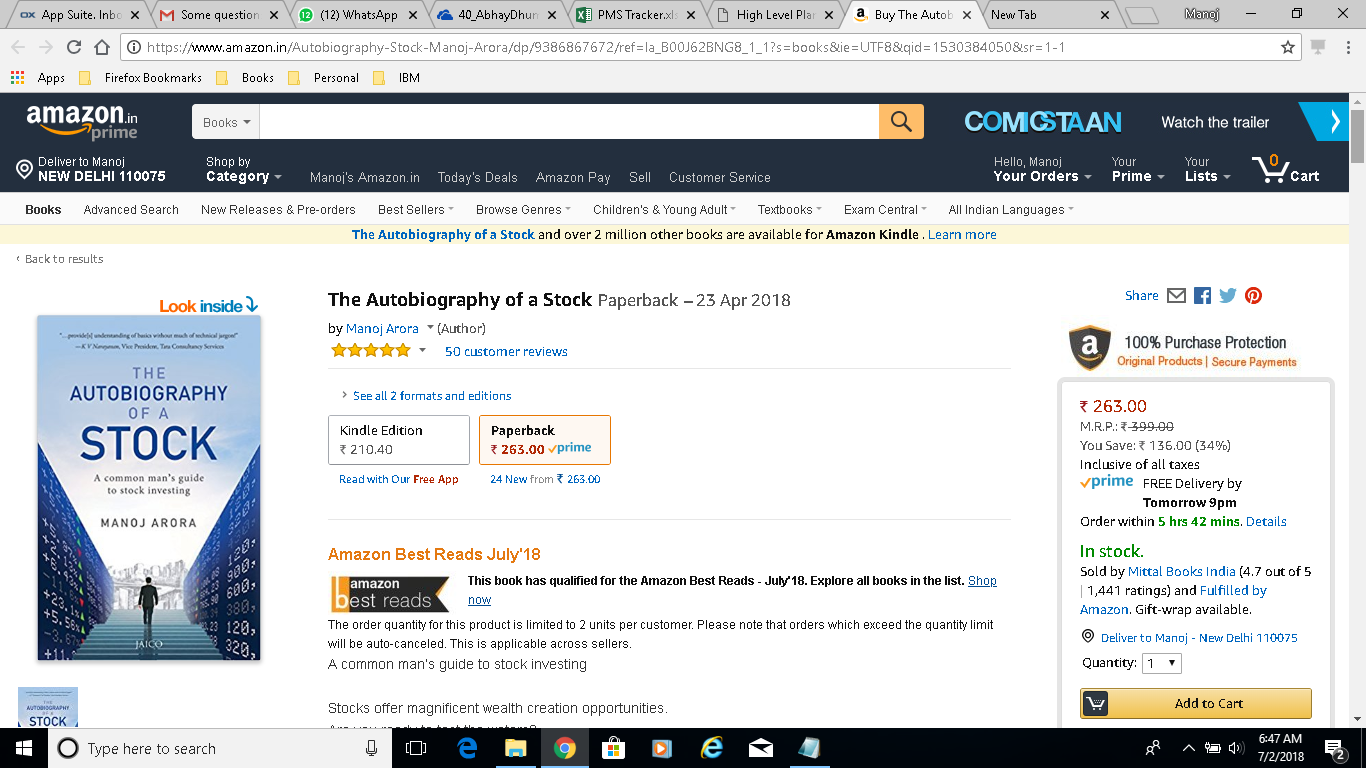 Stocks Book declared as 'Amazon Best Reads' for June & July 2018 More About the Book | BestReads - June 2018 | BestReads - July 2018 |