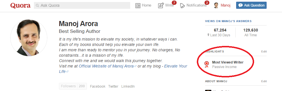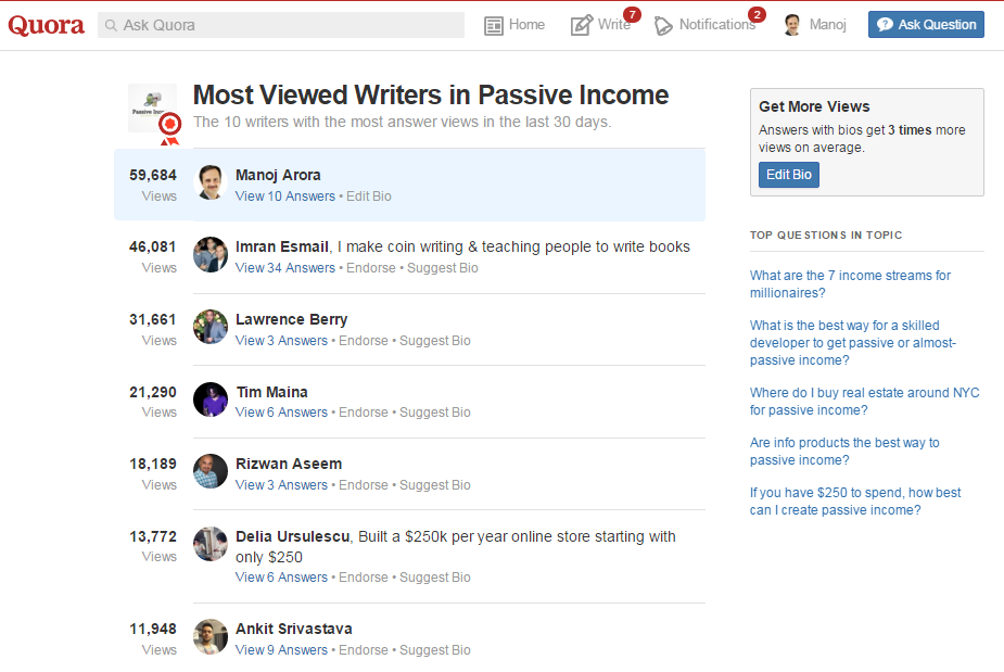 Most Viewed Writer on 'Passive Income' Category Quora Full Screen | View Details | Visit Author at Quora |